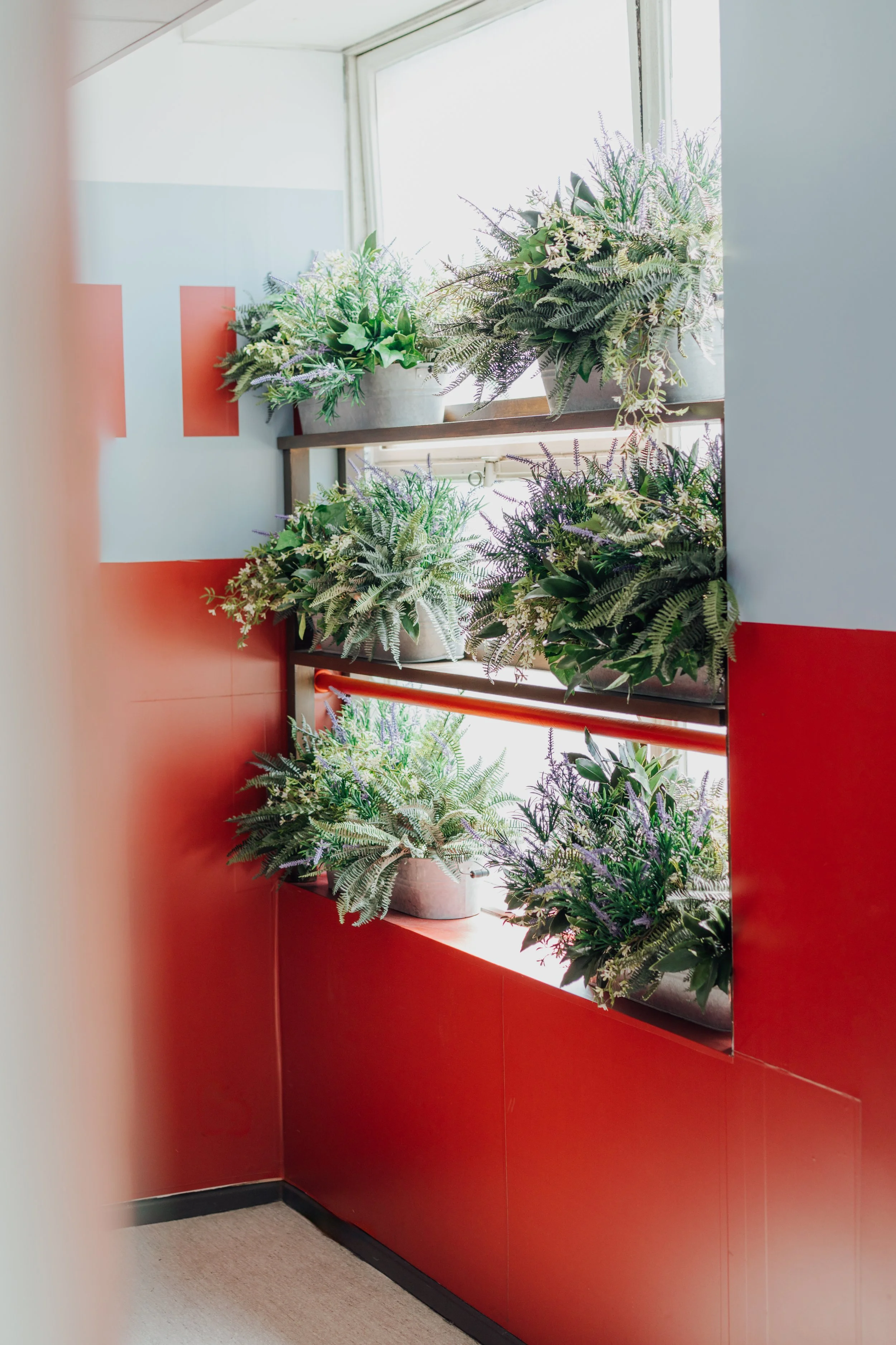 Located just outside the lift, the installation created a sense of arrival and momentum. Layered planting, sculptural lines, and soft textures framed the 1864 brand signage, while subtle pops of lavender echoed the rooftop garden above, tying the journey together with calm and luxurious cohesion.